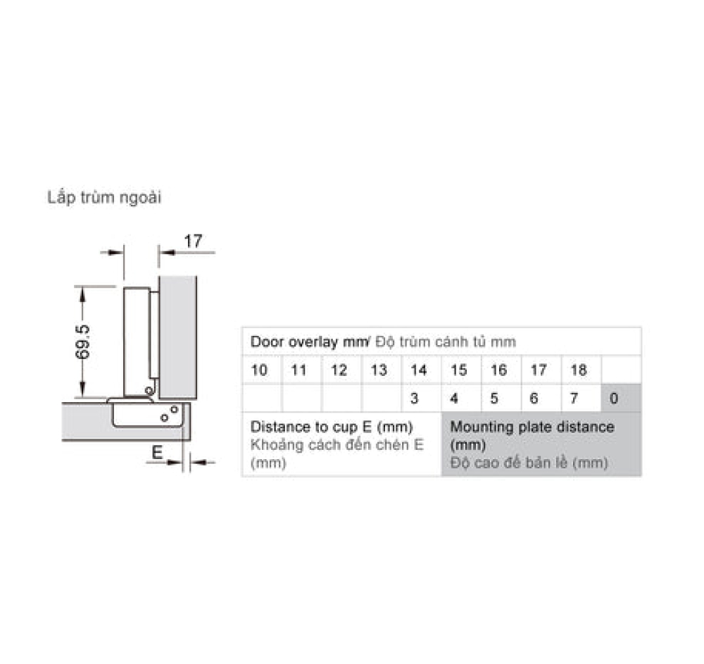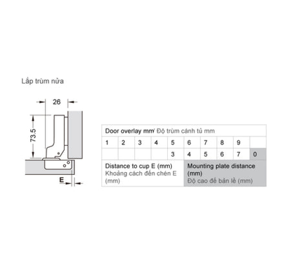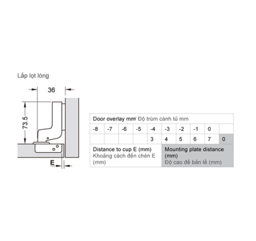 | Chiều sâu lỗ khoan: Chén bản lề 12 mm | |