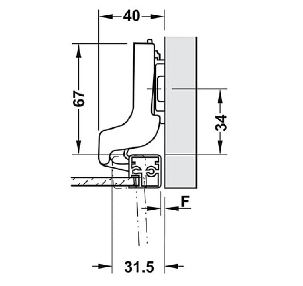Bản lề Hafele Metalla SM 110° cho cửa khung nhôm, đóng giảm chấn - Lắp lọt lòng 315.26.712