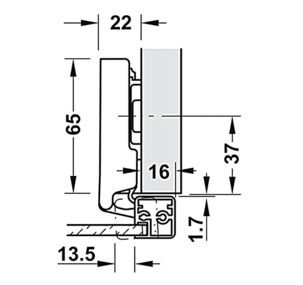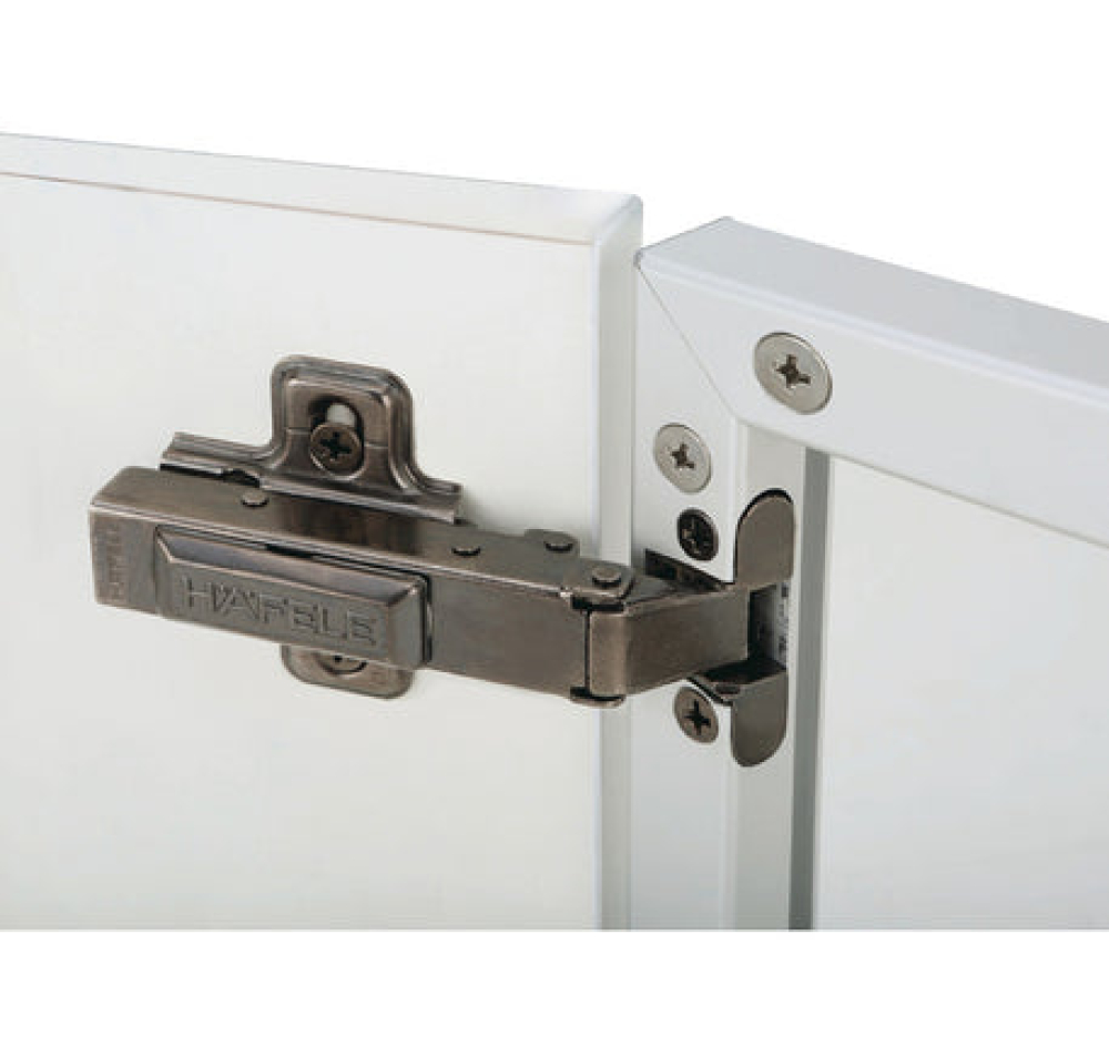 Bản lề Hafele Metalla SM 110° cho cửa khung nhôm, đóng giảm chấn - Lắp trùm ngoài 315.26.710