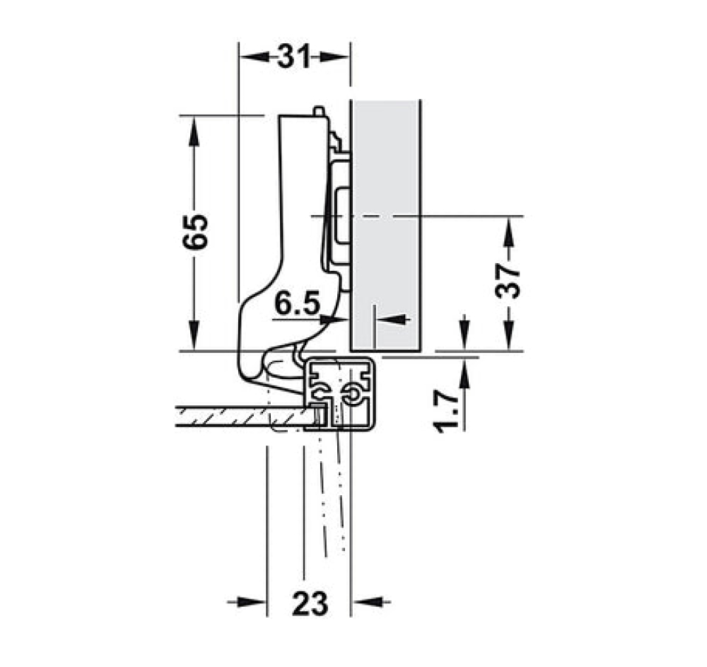 Bản lề Hafele Metalla SM 110° cho cửa khung nhôm, đóng giảm chấn - Lắp trùm nửa 315.26.711