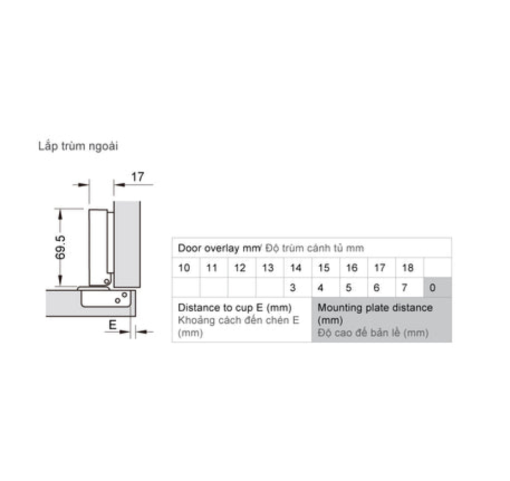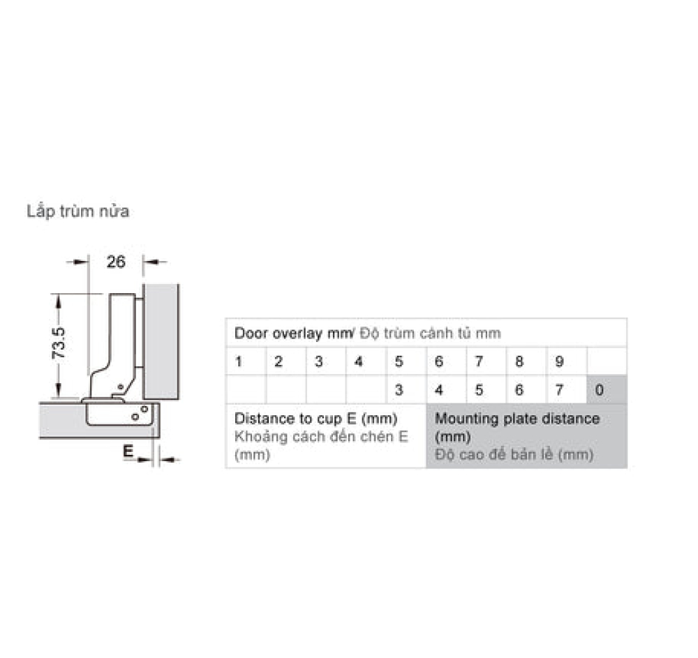 Chiều sâu lỗ khoan: Chén bản lề 12 mm