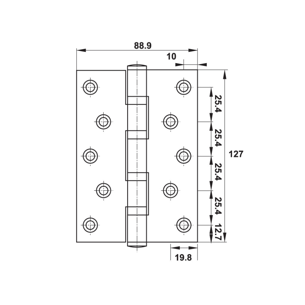 Bản lề lá Hafele inox 127 x 89 x 3 mm 2 vòng bi 489.05.023