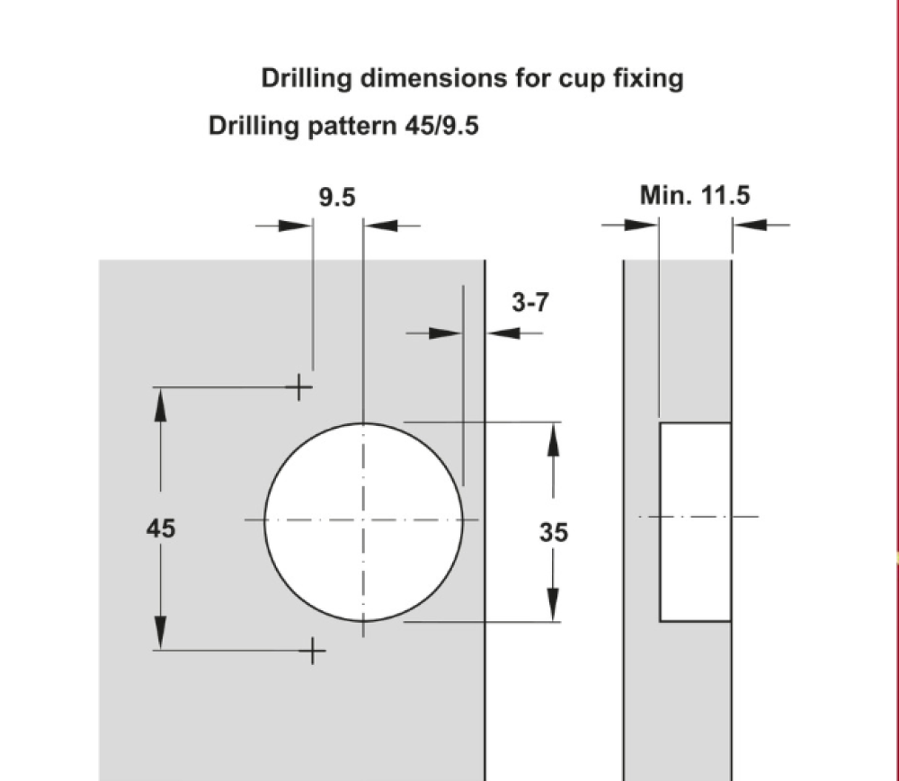 - Điều chỉnh : điều chỉnh mặt bên +/-2.5mm, điều chỉnh chiều cao +/-2mm ( qua đế chén bản lề ), điều chỉnh chiều sâu +/-2mm