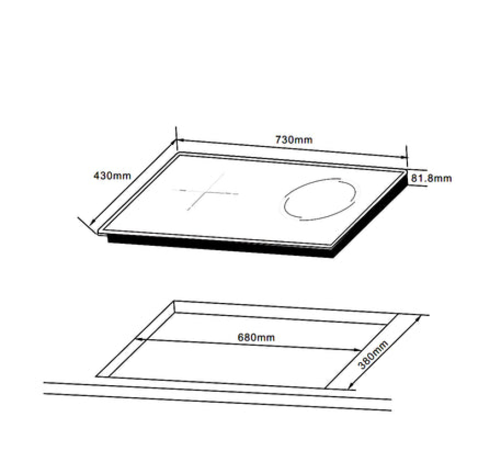 | 1 vùng nấu từ bên trái: Ø200 mm - 2,0/ 2,2 kW (gia nhiệt nhanh) |