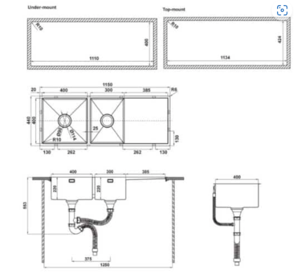 - Kích thước mỗi bồn: 400D x 400R mm / 300D x 400R mm