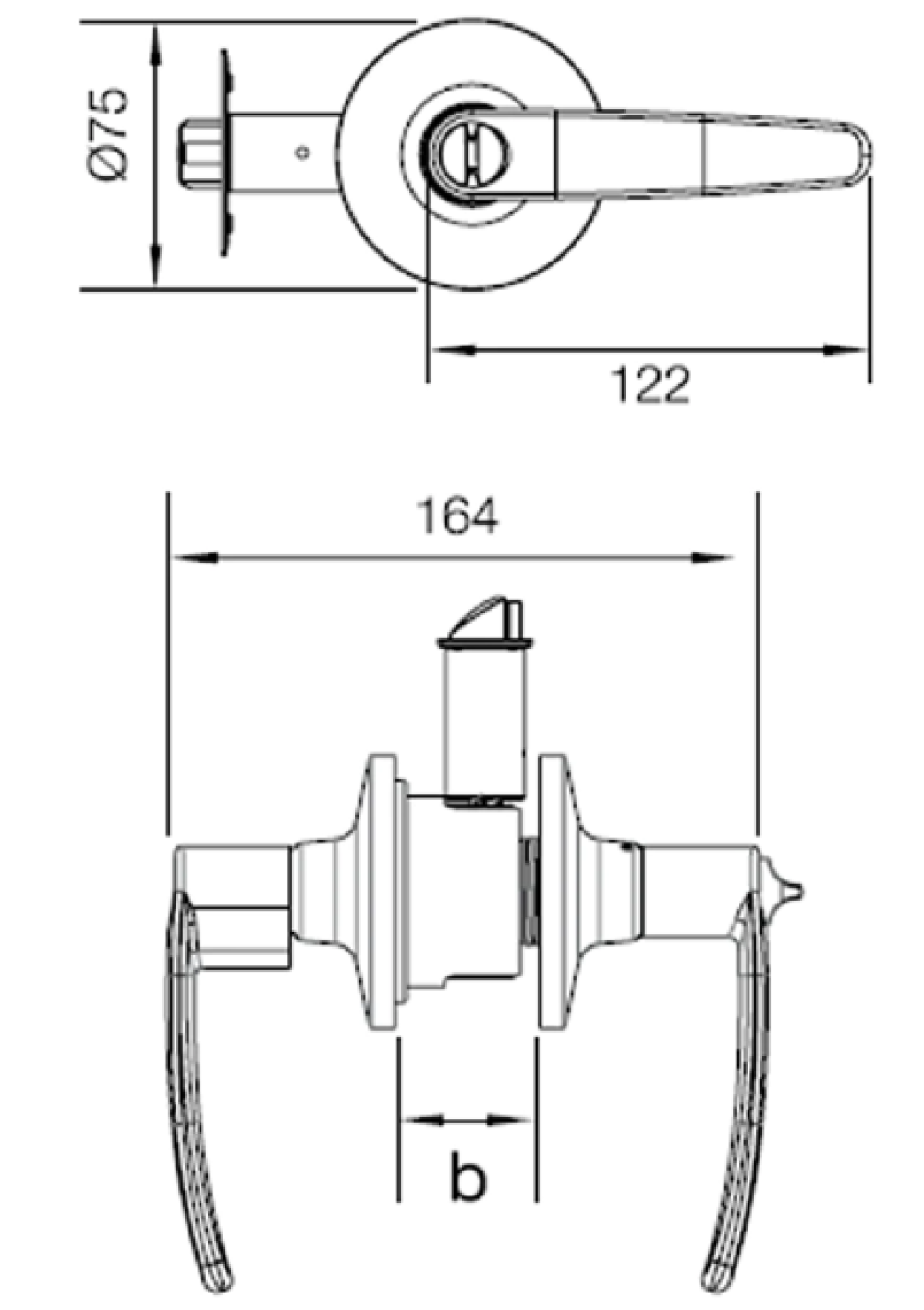 - Bộ khóa tay nắm gạt cho cửa toilet