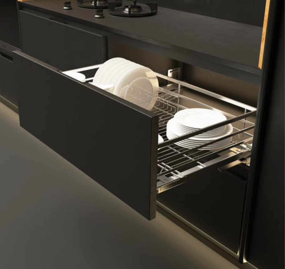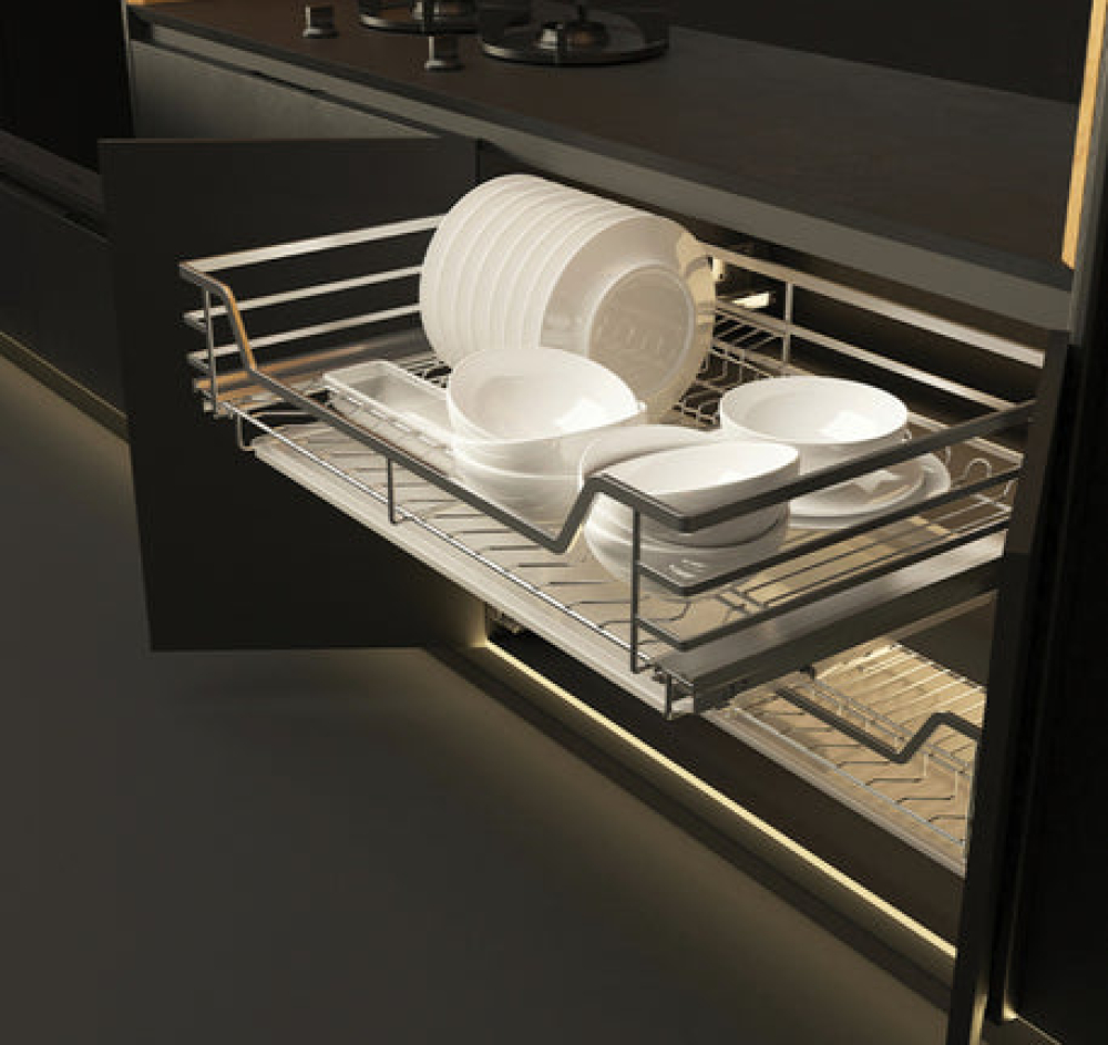 Bộ rổ chén đĩa Hafele - Cappella, phiên bản rổ chén đĩa kèm ống đựng đũa 549.08.153