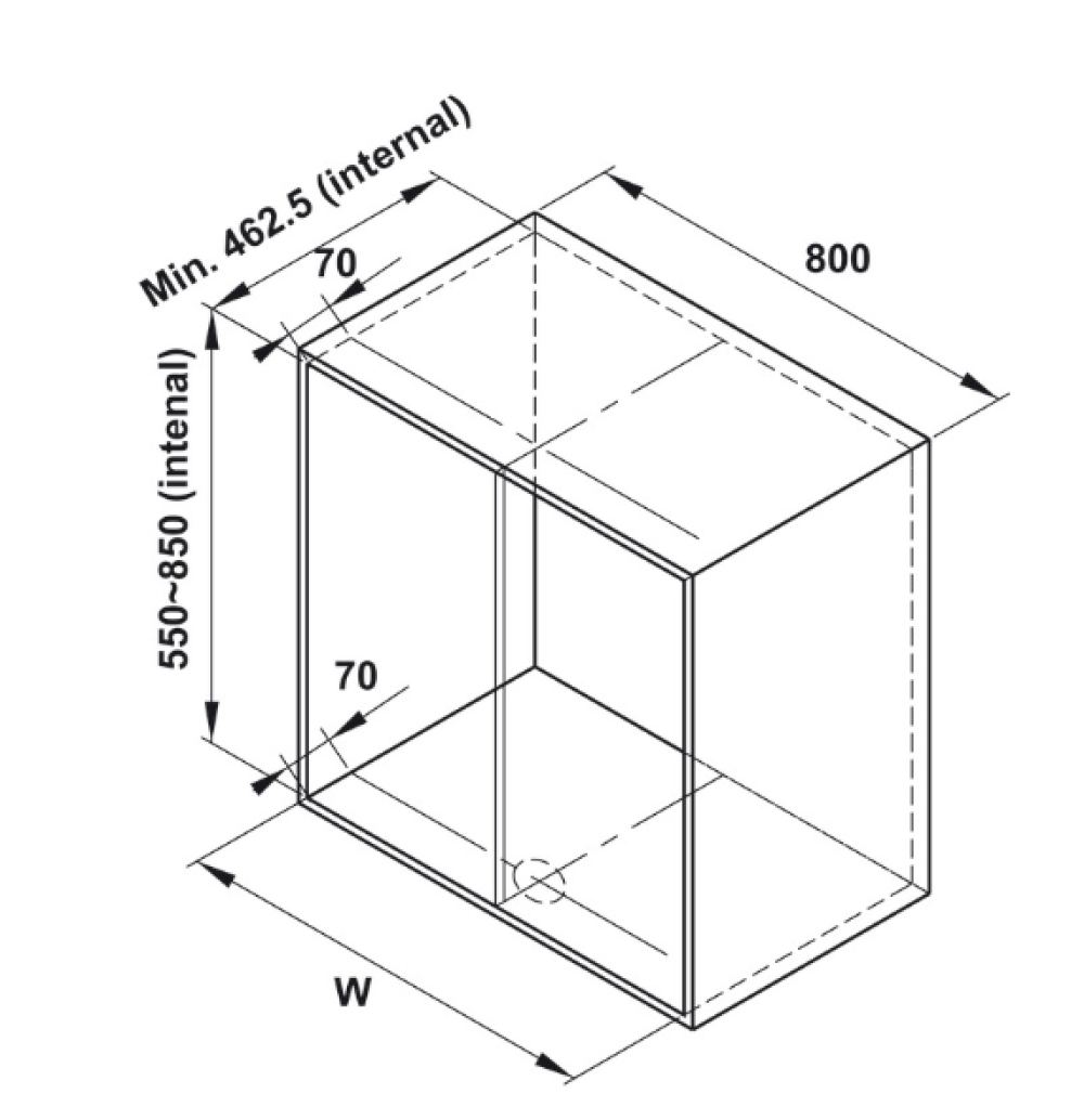 - Chiều rộng lọt lòng tủ ( R ) : tối thiểu 764mm
