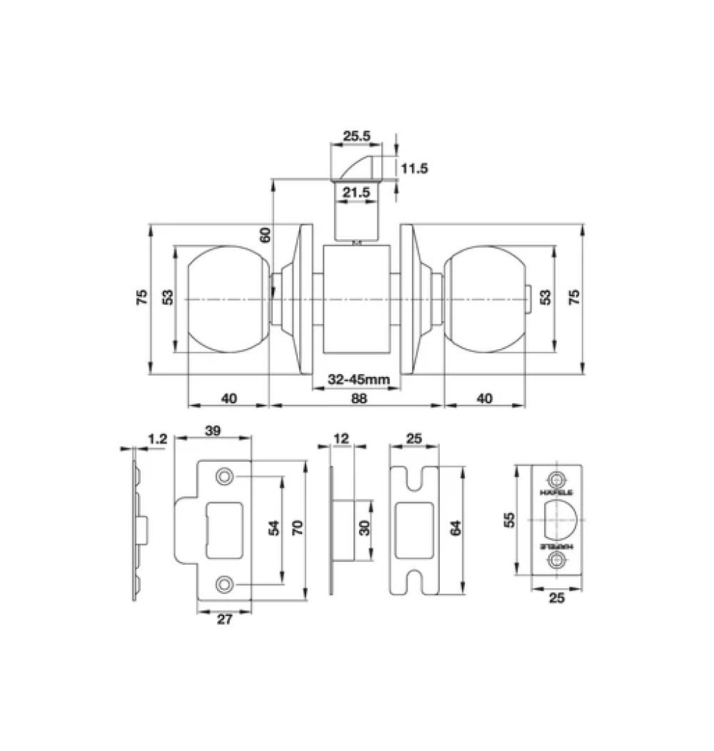 | Khoảng cách từ cạnh cửa đến tâm lỗ ruột khóa: 60 mm |