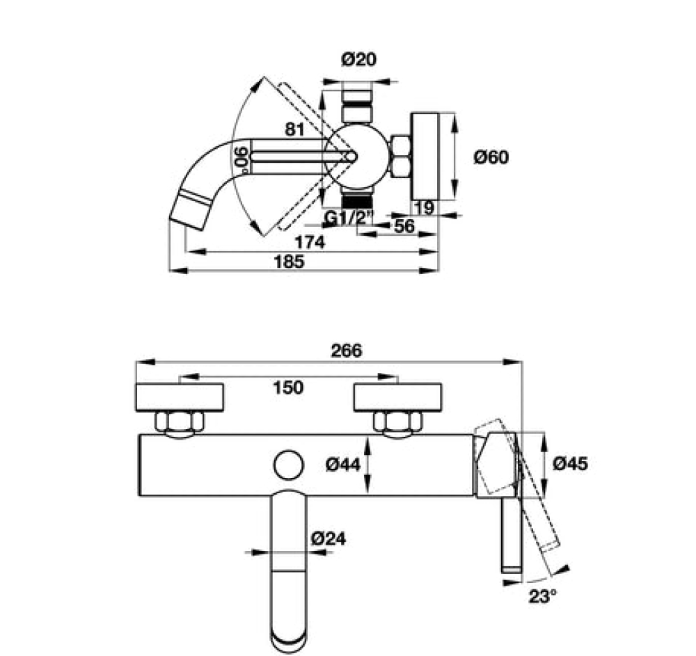 Bộ trộn bồn tắm Hafele lắp nổi ROOTS 495.61.145