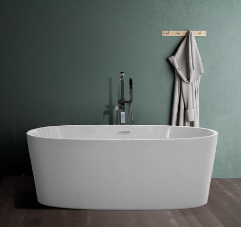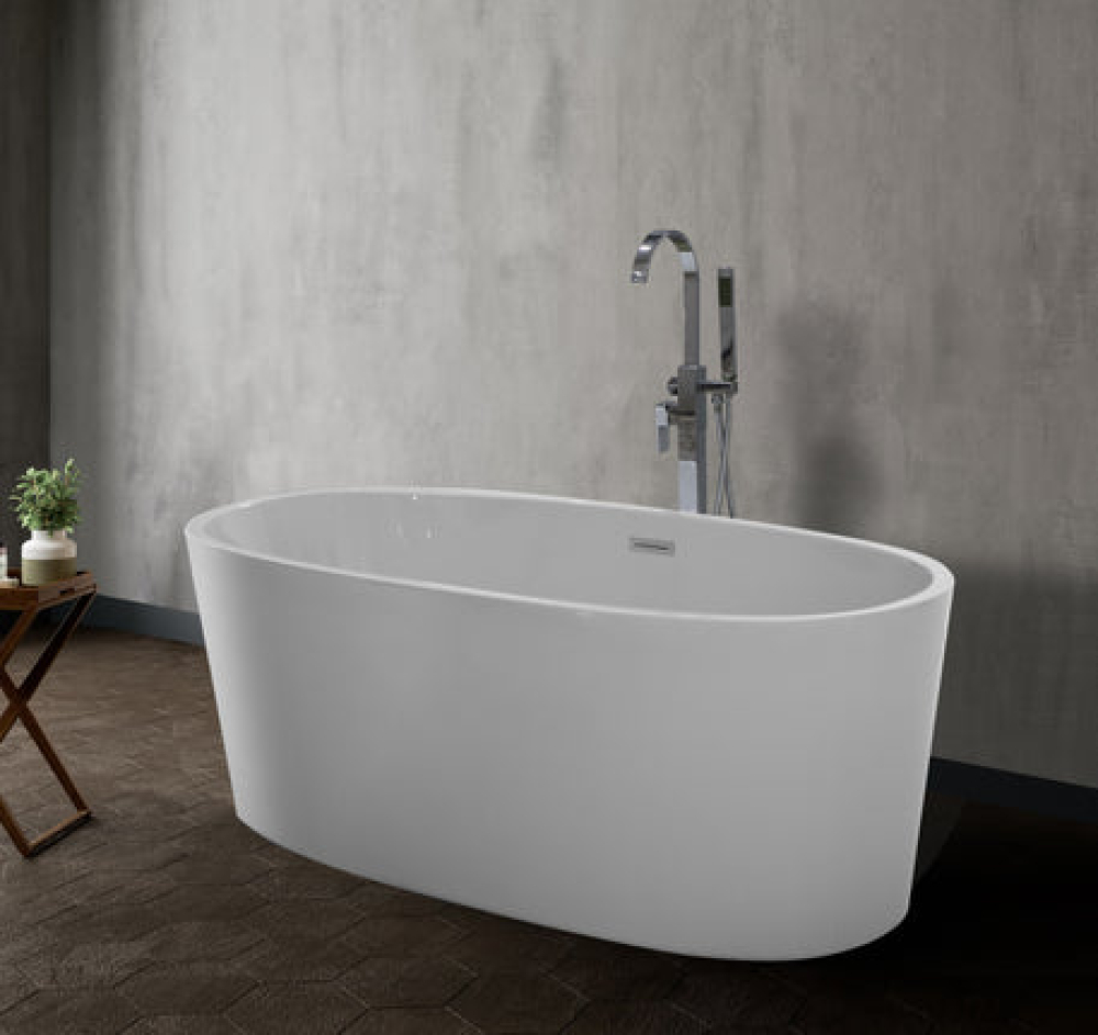 Bồn tắm độc lập hình bầu dục, bằng acrylic màu trắng