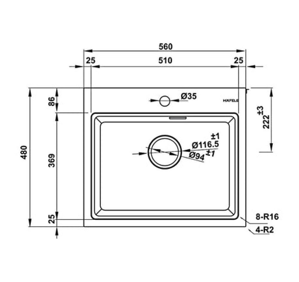 Chậu đá Hafele ESSENCE HS22-GEN1S60M, chậu đơn 577.25.320