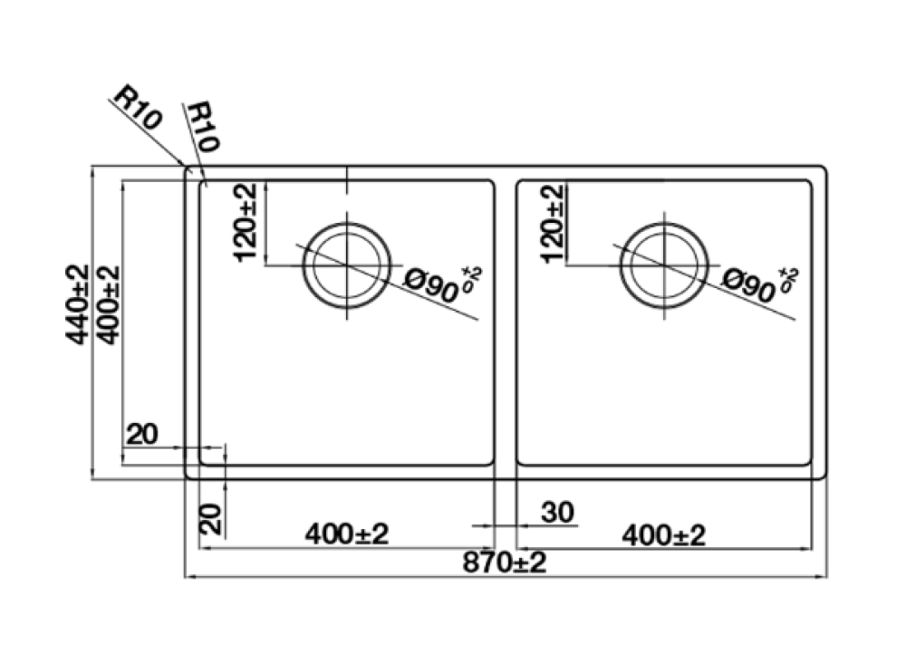- Kích thước bồn : D400 x R400mm/ D400 x R400mm