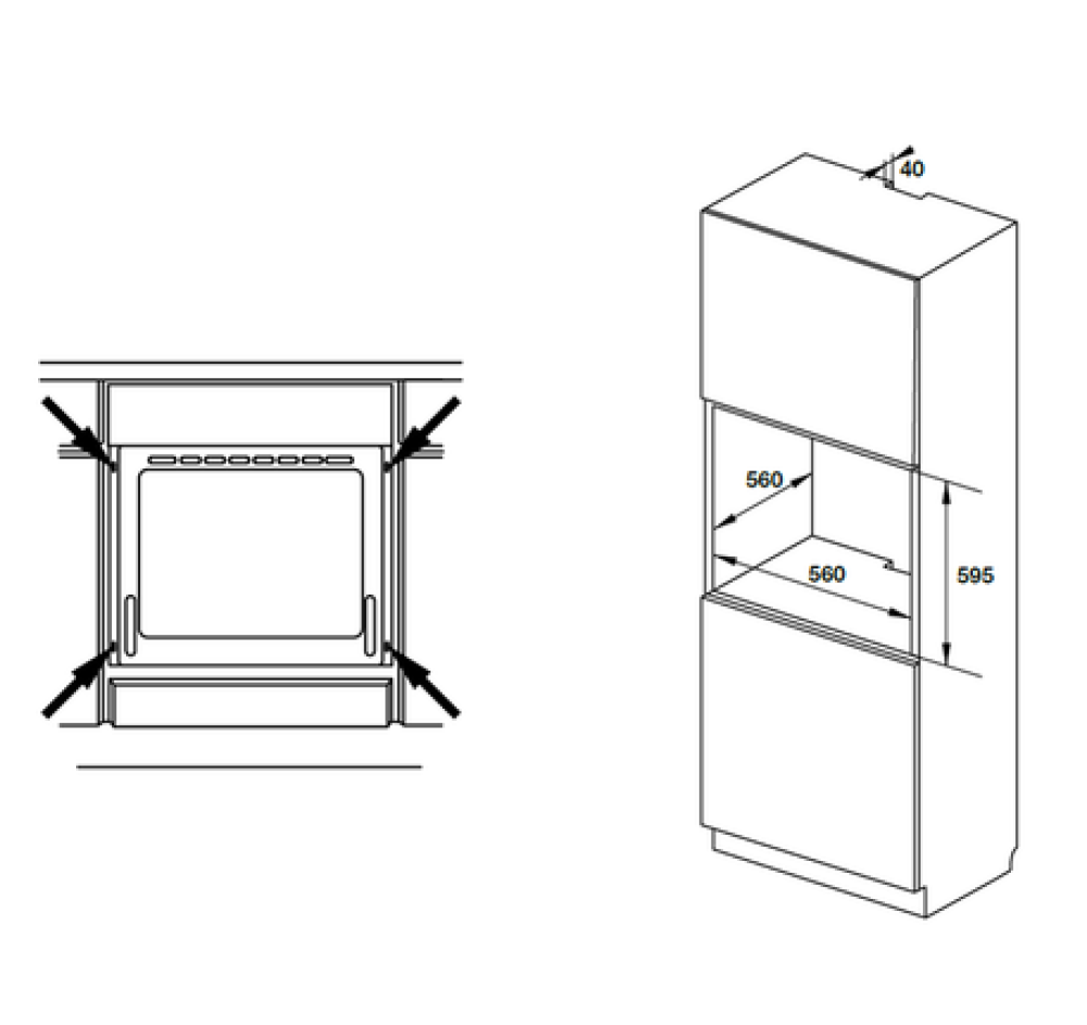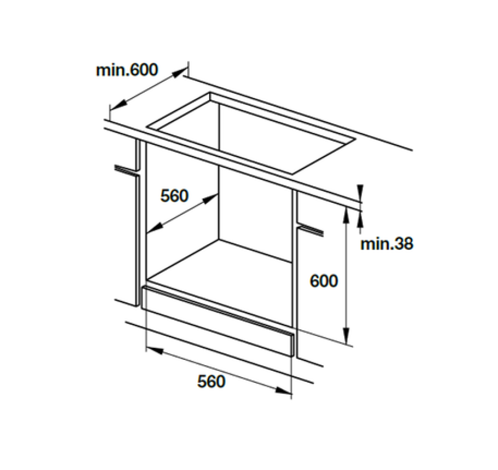| Kích thước hộc tủ: 595-600C x 560R x 560S mm |