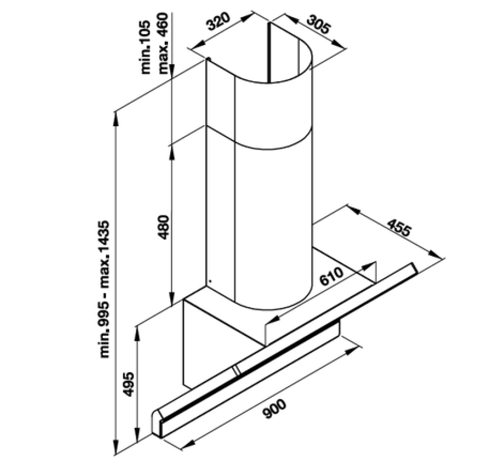| Kích thước sản phẩm: 900R x 955-1435C x 455S mm |