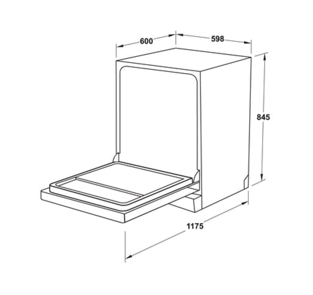 | Kích thước sản phẩm: 598R x (600-1175)S x 845C mm |