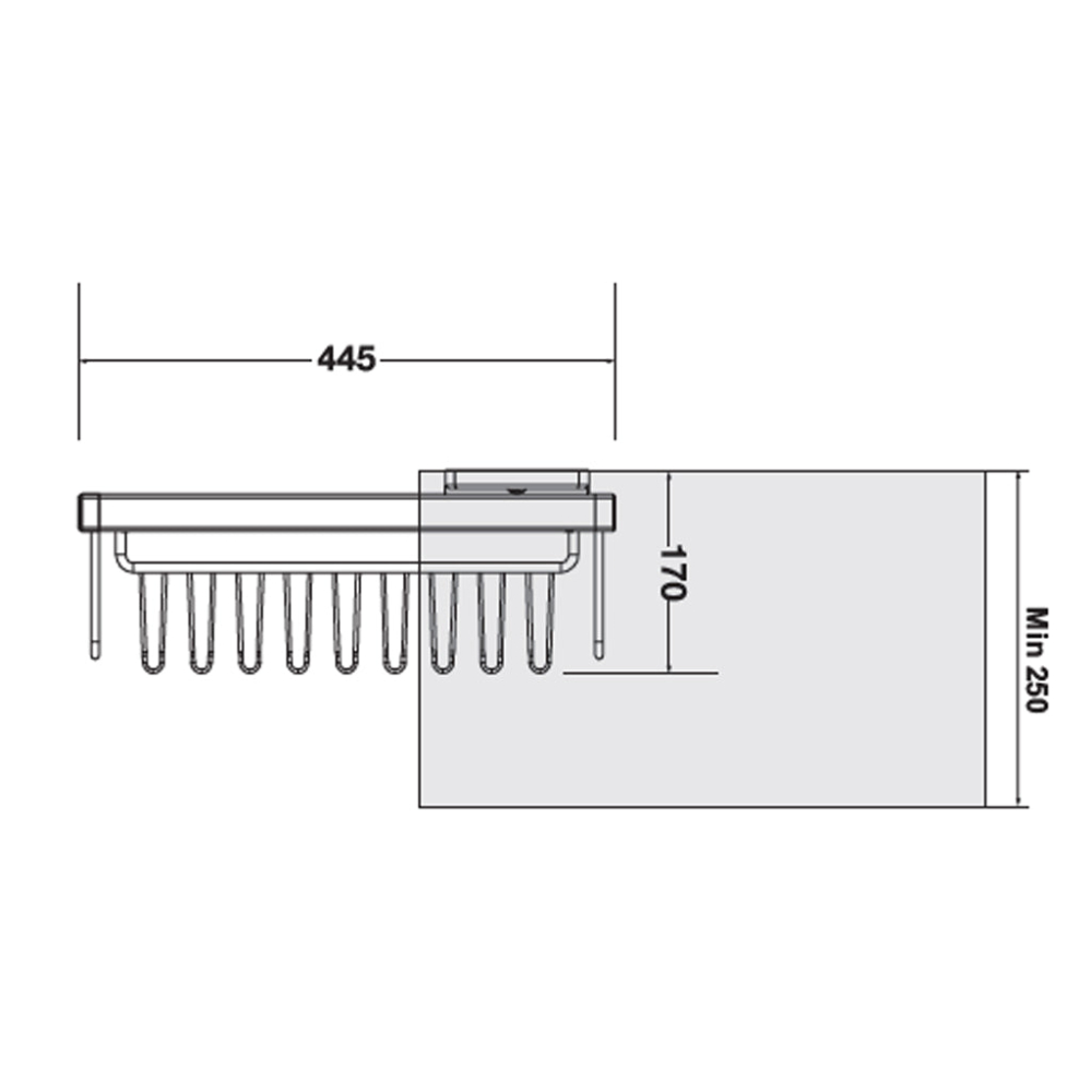 170 x 445 x 85 Chiều rộng tủ phủ bì: min. 250 |