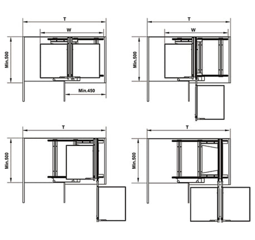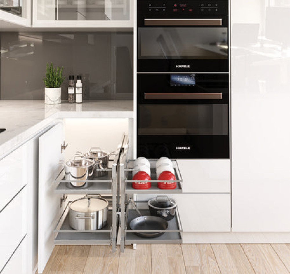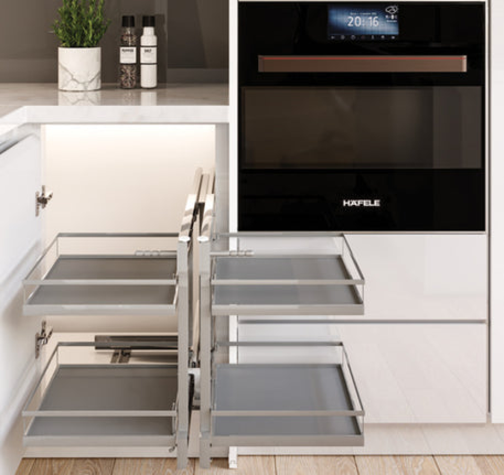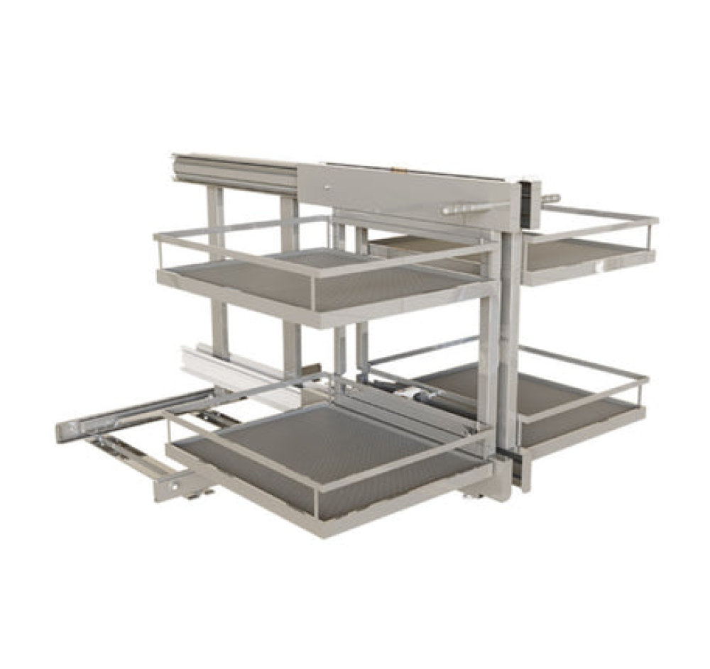 | Hệ thống mở toàn phần cho phép di chuyển cả 4 khay ra ngoài góc tủ |
