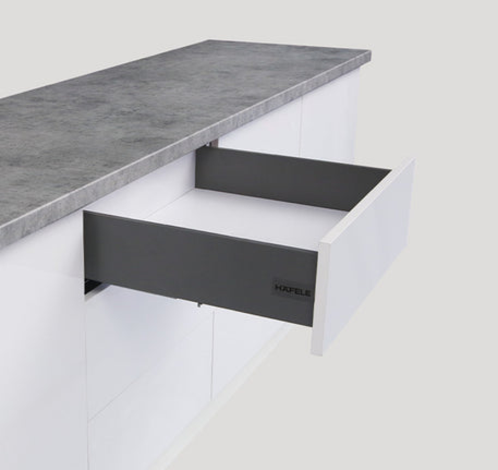 | Trọn bộ gồm: 1 cặp ray trượt mở toàn phần, 1 cặp thành hộp H120 mm, 2 bas mặt trước, 1 cặp bas ray trượt, 2 bas mặt sau và 2 nắp che với Häfele logo |