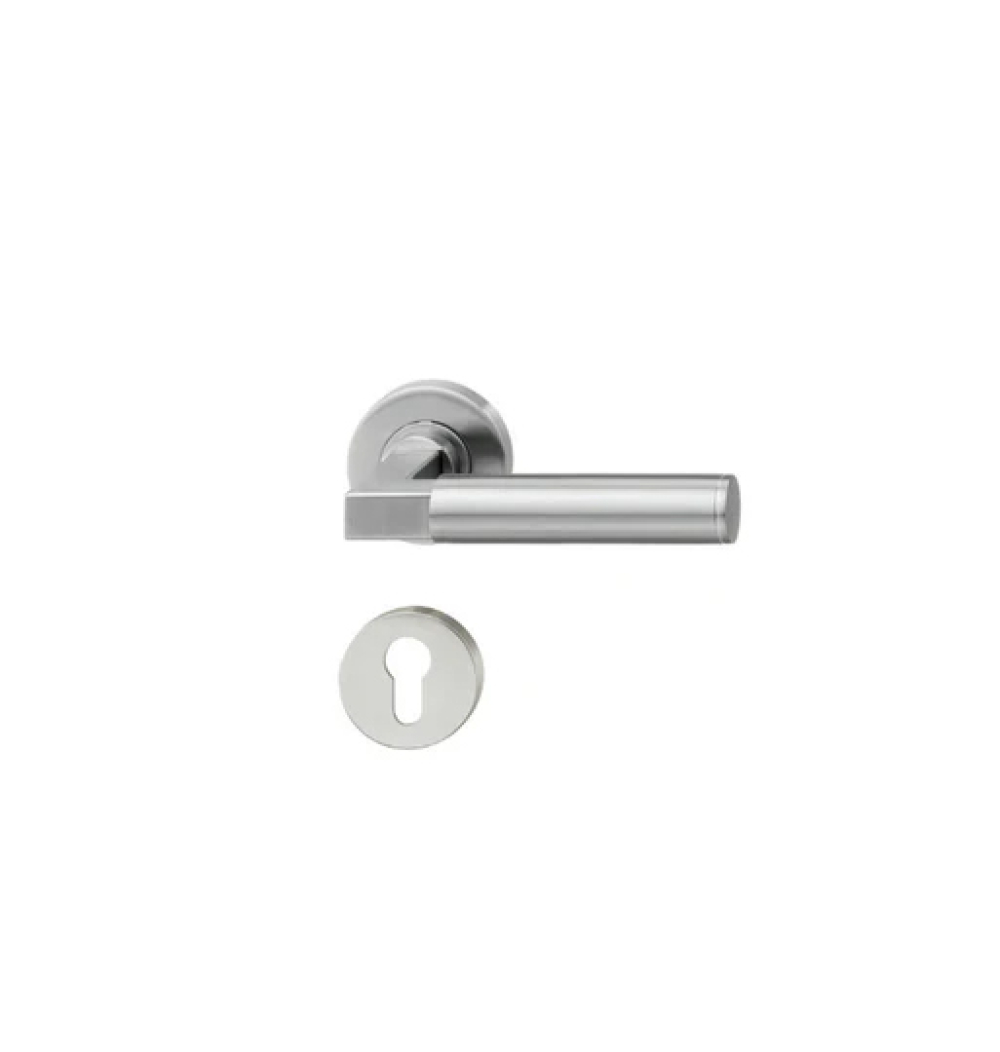 Trọn bộ gồm: 2 tay nắm gạt, 1 bộ nắp chụp tay nắm, 1 bộ nắp chụp ruột khóa PC, 1 bộ vít