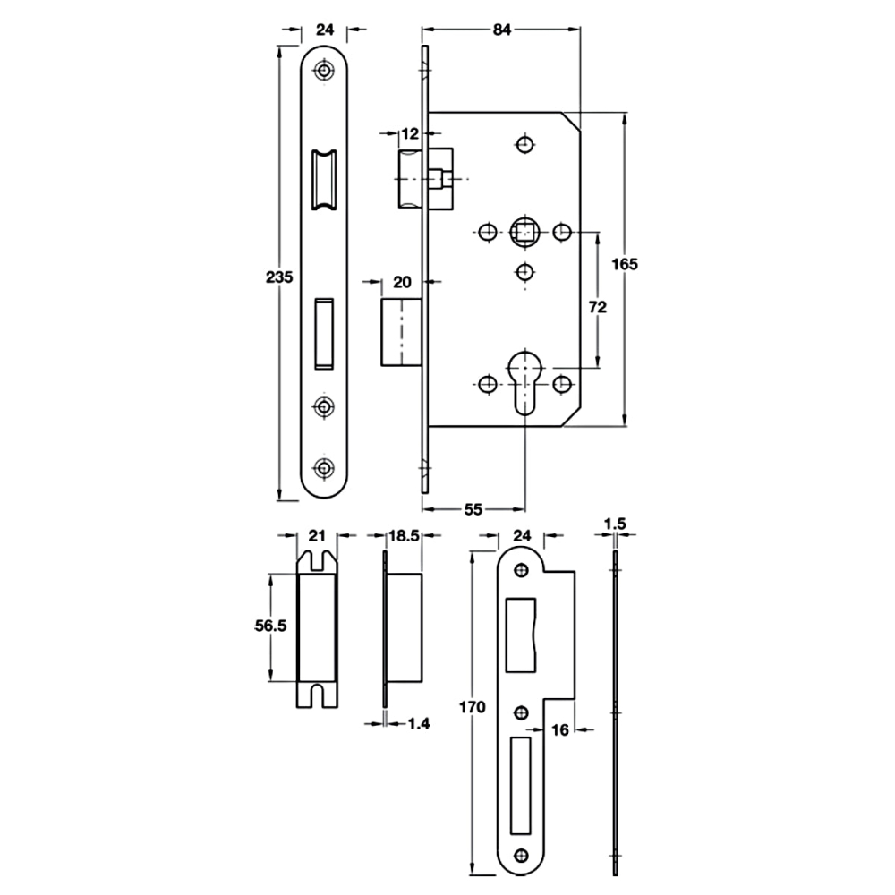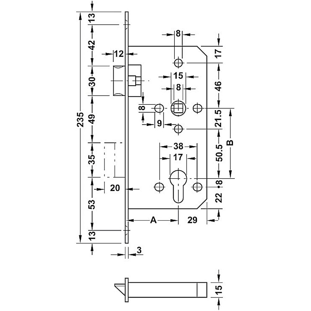 Khóa Vuông Econo Cửa Dày 22mm Hafele 232.01.220