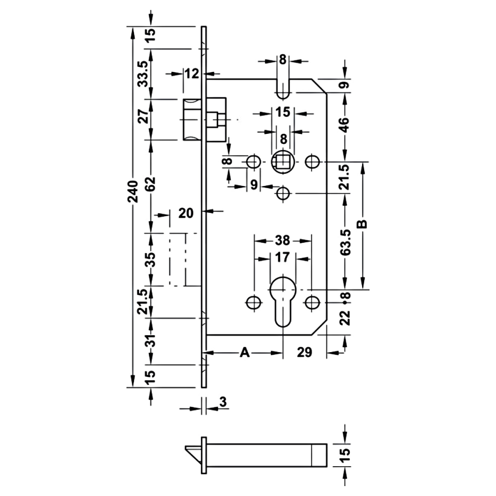 Khóa Vuông Econo Cửa Dày 22mm Hafele 232.01.220