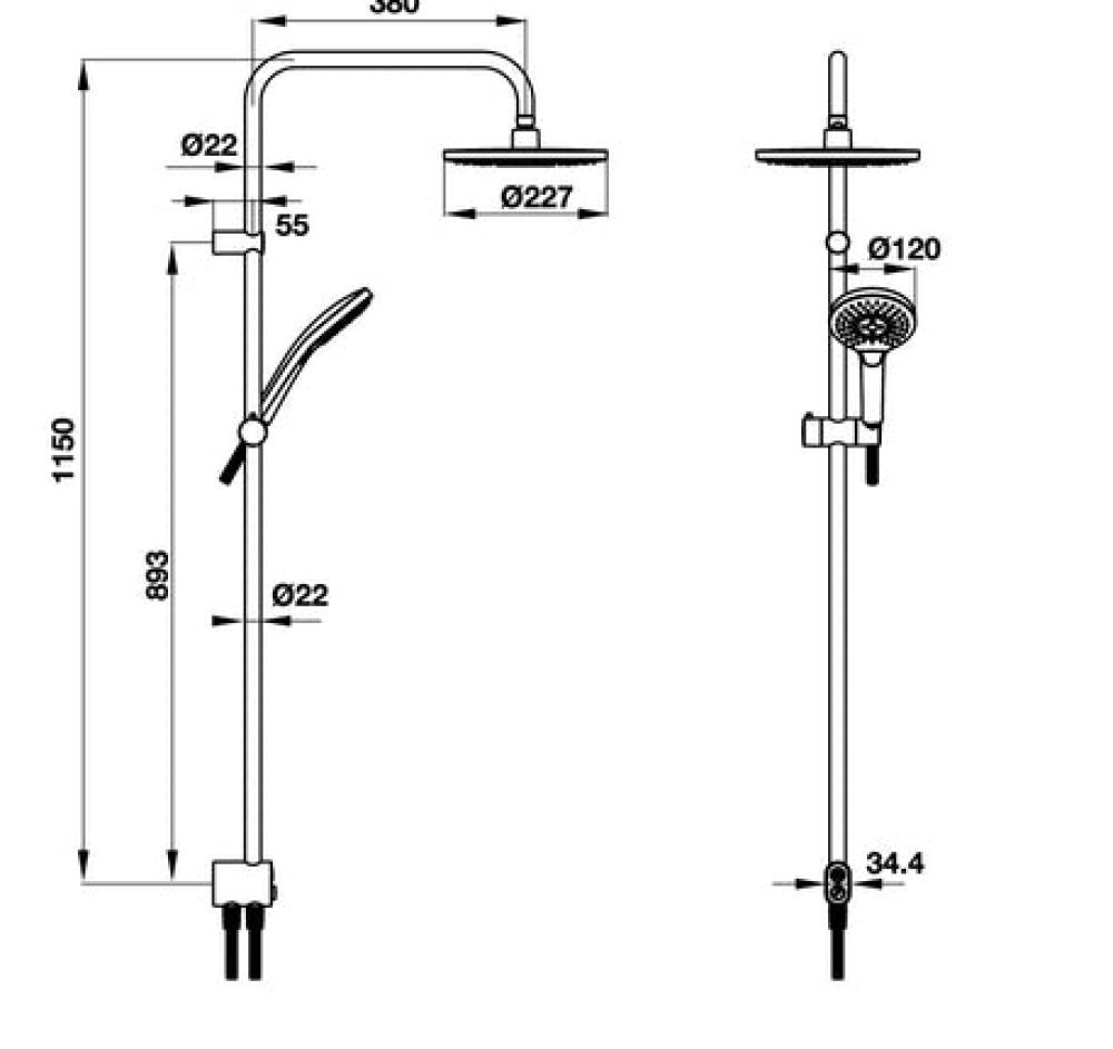 Lưu lượng nước của sen đầu ở 3 bar: 15.7 lít / phút