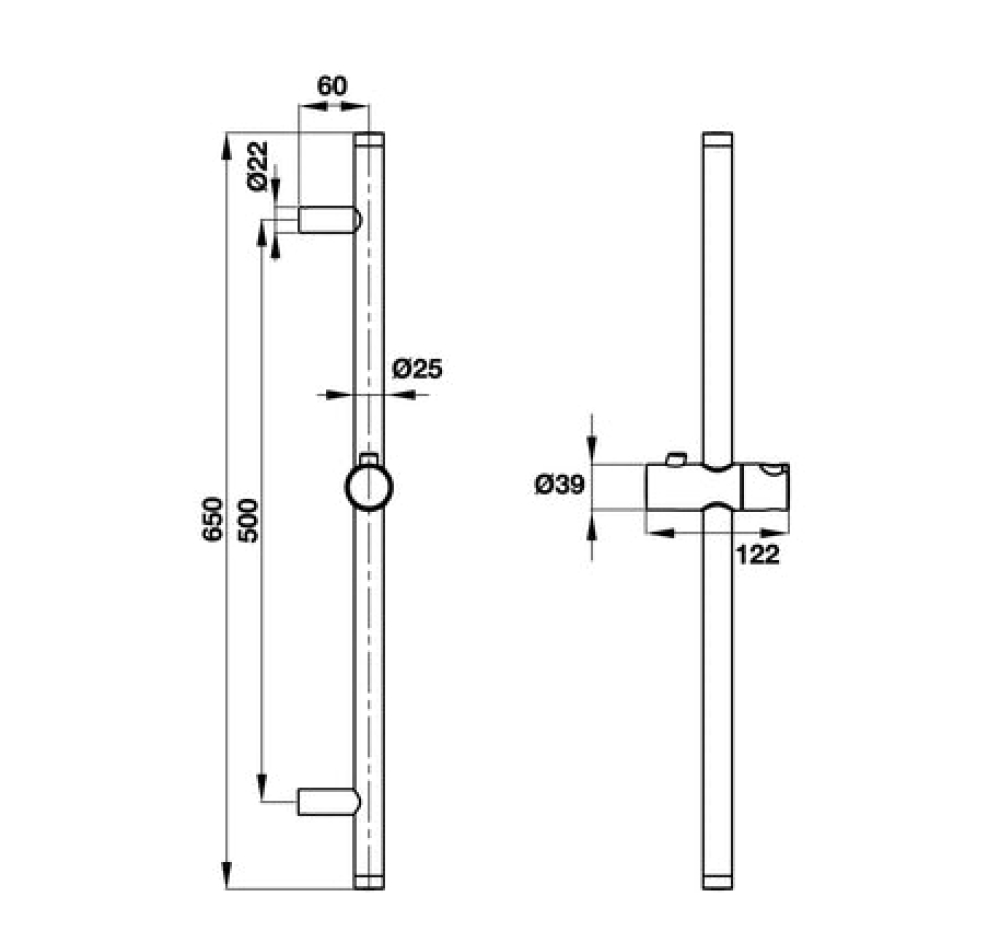 Thanh trượt cho sen tay Hafele 650 mm 485.60.614