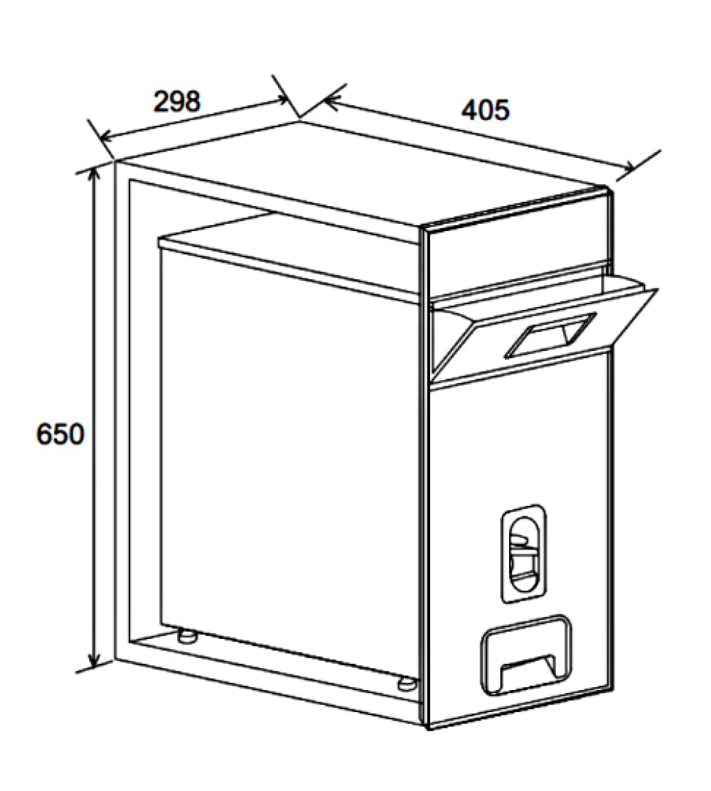 - Chiều sâu lọt lòng : tối thiểu 405mm